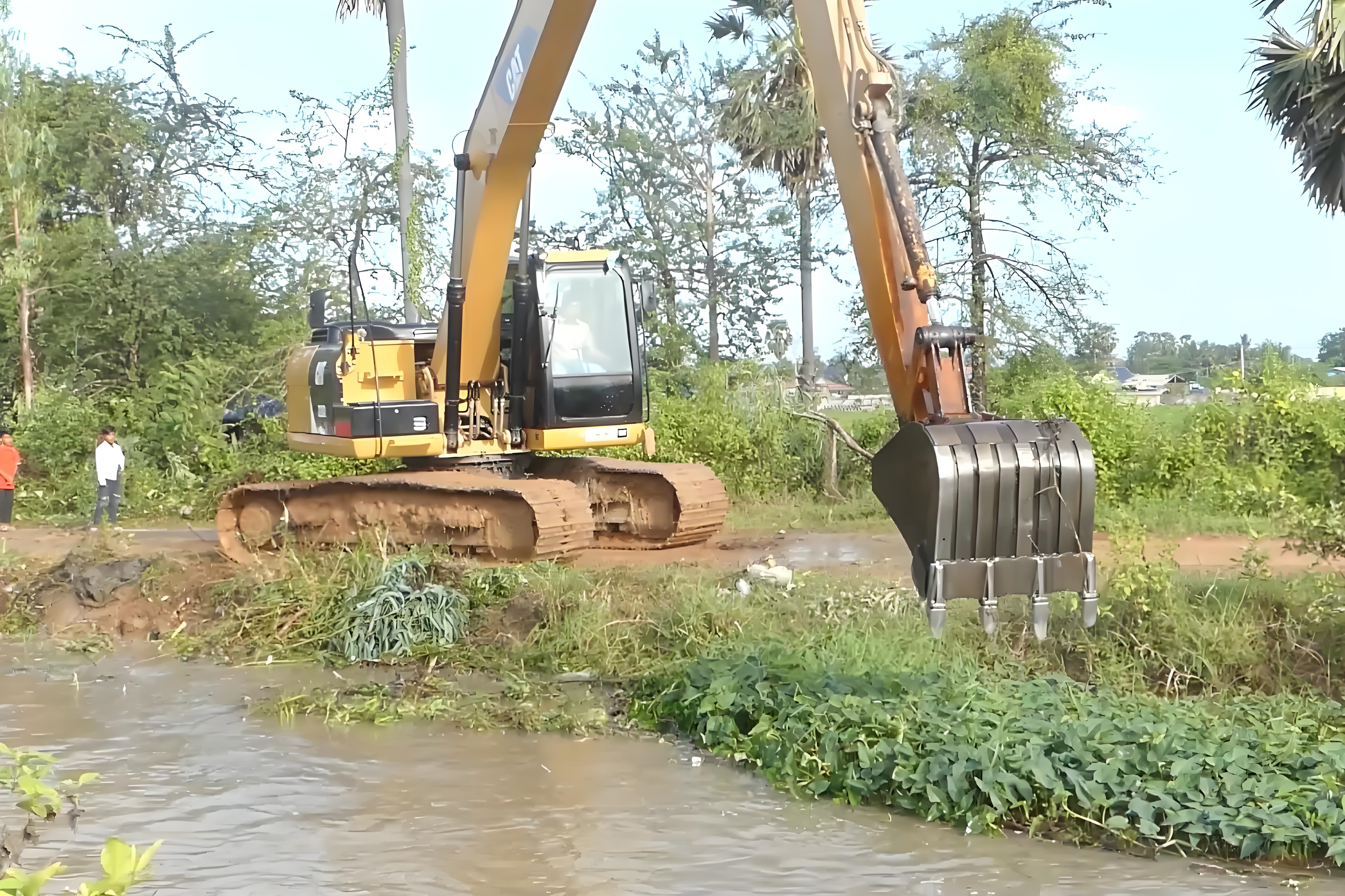 空間限制也很關(guān)鍵,狹窄的河道、岸邊有障礙物(比如電線桿、建筑物)時,挖機(jī)回轉(zhuǎn)半徑受限,鏟斗不能充分展開,卸土也麻煩。